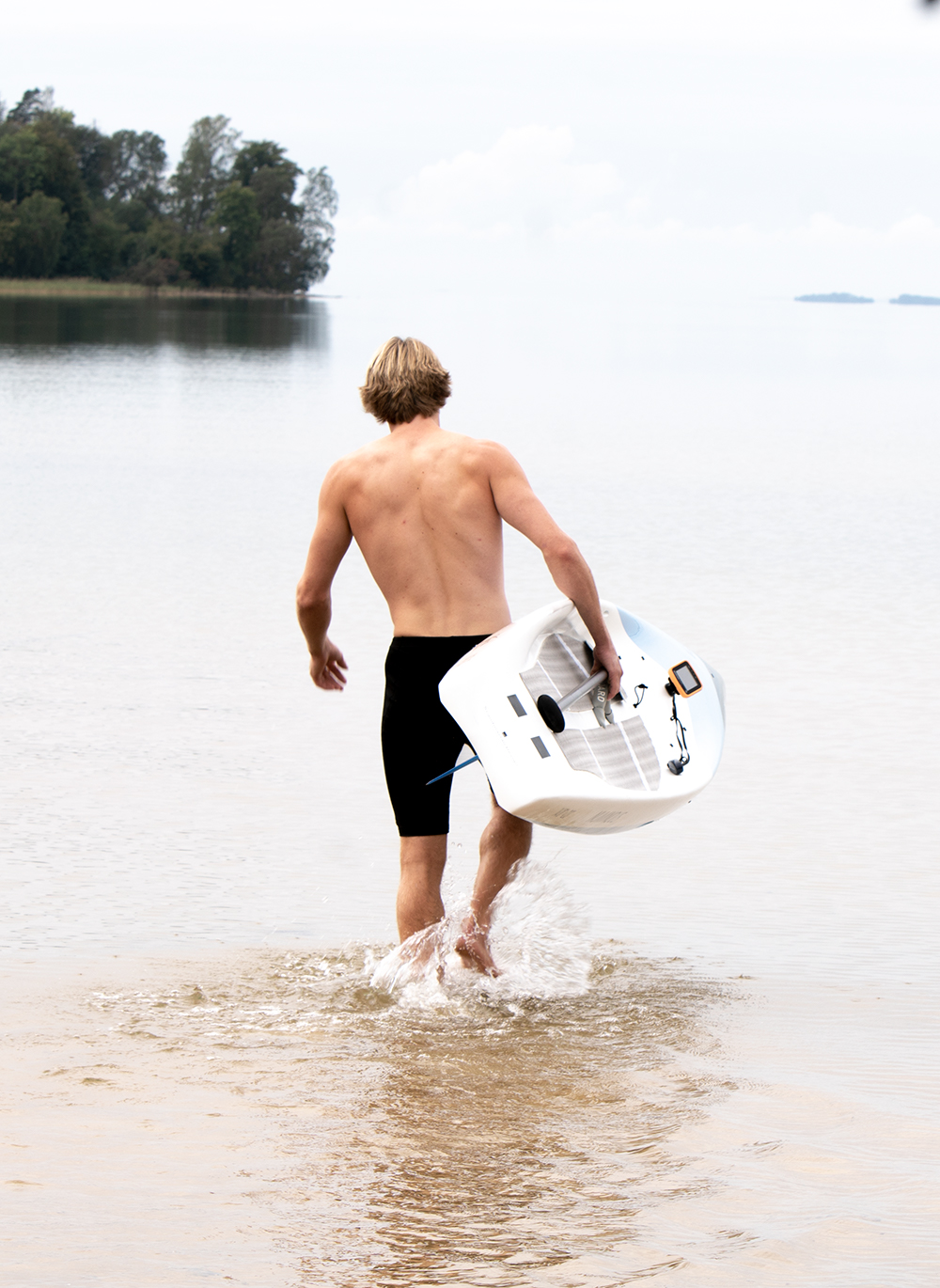 Brädan har ett handtag på mitten kombinerat med infasningar för racestarter från land. Det gör att paddlaren kan springa och samtidigt smidigt hålla brädan paddeln under krävande beachracestarter.