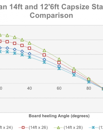 Our stability number is a formula that considers all aspects of stability, including the deck position, centre of gravity, volume distribution, width, and weight.